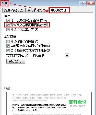 选中所要设置的文字或者整行或者整个段落,右键单击会出现菜单项选择“段落”,在弹出的“段落”窗口中,单击“中文版式”标签,勾选“允许西文在单词中间转行”,最后单击“确定”。如图: