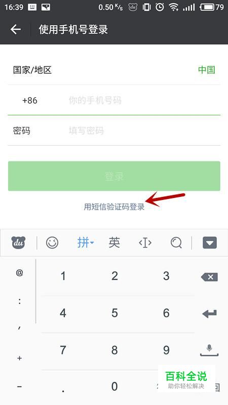 在登录界面,选择“用短信验证码登录”