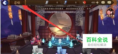 首先你要有一个式神,这就需要你召唤一下。找到界面左上角的“召唤”按钮,这个是用来召唤式神的可以语音,可以画符,ssr式神最难召唤了。