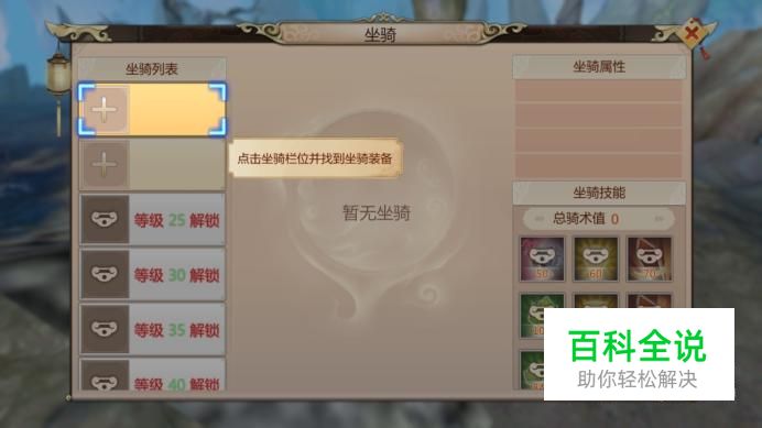 当玩家完成任务获得坐骑后,点击右下角“坐骑”进入坐骑界面。