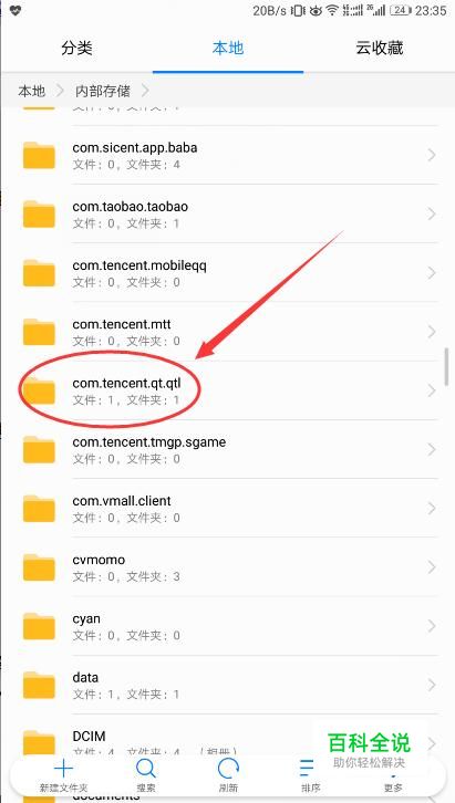 首先打开手机的文件管理器,然后找到”.com.tencent.qt.qtl“这个文件夹。