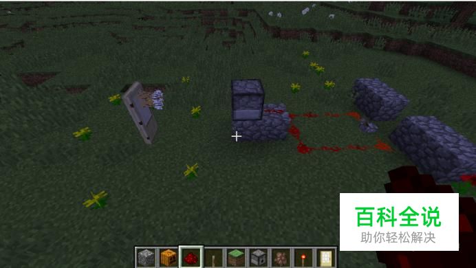 然后在另一端中间的放上两块圆石并且放上发射器。
