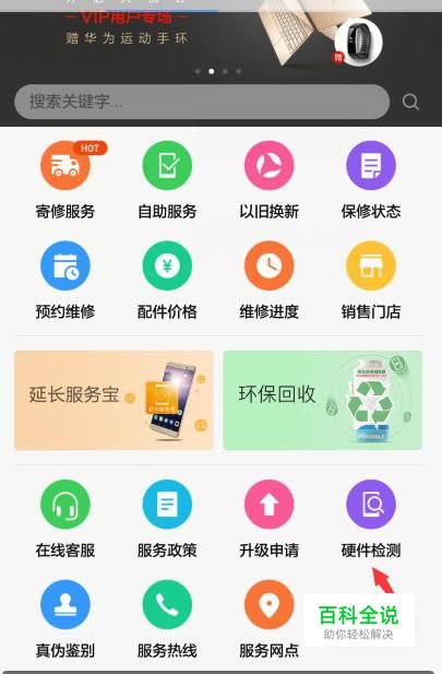 在会员服务页面,点击“硬件检测”