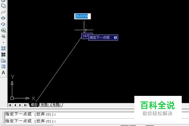按下回车键来执行命令。这样在界面中就画出了一条长为100,角度为0度的直线。