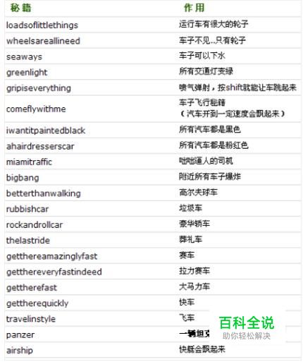 说明一下,侠盗飞车输入秘籍时是在游戏里直接输入以下英文就可以的,不输入有对话框。如果汽车你已经开腻了,想立马在游戏里召唤一辆坦克之类的交通工具,那你就可以参照一下下图交通工具秘籍来随时召唤吧。非常有趣哟,有各种功能,慢慢尝试吧,你一定会玩的不亦乐乎。