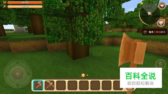 进入“迷你世界”游戏界面,找到一棵树。
