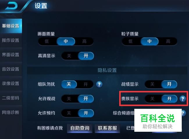 “设置页面”的“基础设置”里面,找到右下角“贵族显示”的开关。