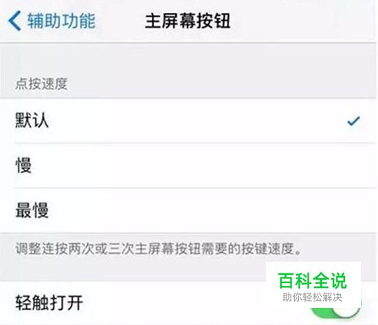 可以开启“轻触打开”,然后就可以通过指纹识别,不用按Home键就直接进入iPhone。