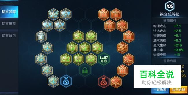 在铭文背包内可以看到自己拥有的铭文,这里分为5个等级,小编一般都会将铭文出售,这里就是分解的意思,查看哪些铭文不需要,点击该铭文。如图