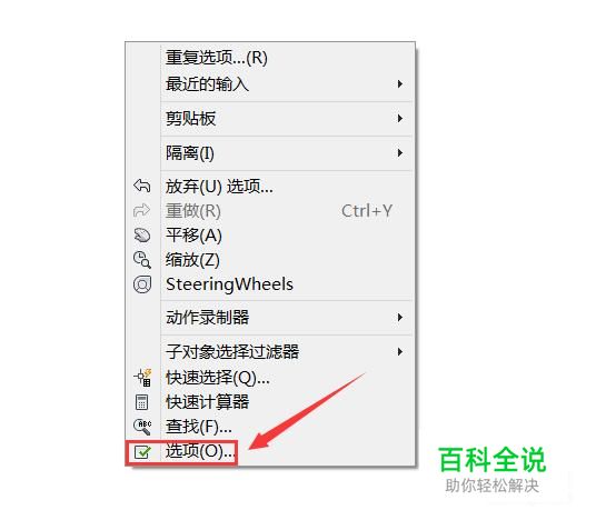 该界面是纯白的背景很不爽吧,在工作区里点击鼠标右键,在弹出的右键菜单里找到选项选项,如图所示: