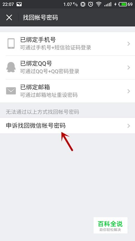 最后还可以进行申诉,选择“申诉找回微信帐号密码”