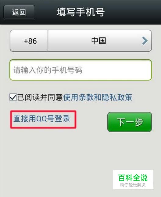 进入注册的界面后,点击“直接用QQ号登录”,并勾选“已阅读并同意”