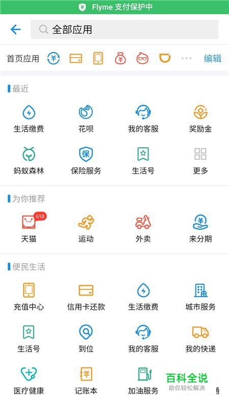 在全部支付宝应用中,选择“便民生活-城市服务”