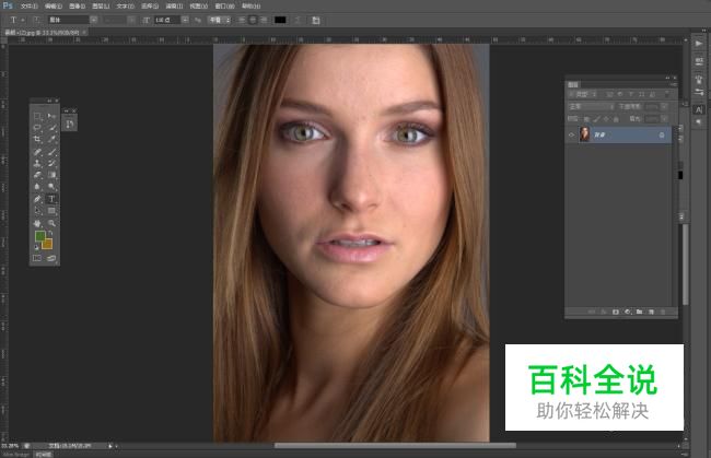 首先打开你需要处理的图像,可以看出我们照片中模特皮肤是有很多密密麻麻的小痘痘的;因此我们需要进行对其进行磨皮操作。