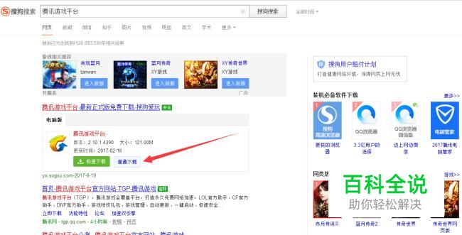 打开搜狗搜索,搜索腾讯游戏平台,点击下载