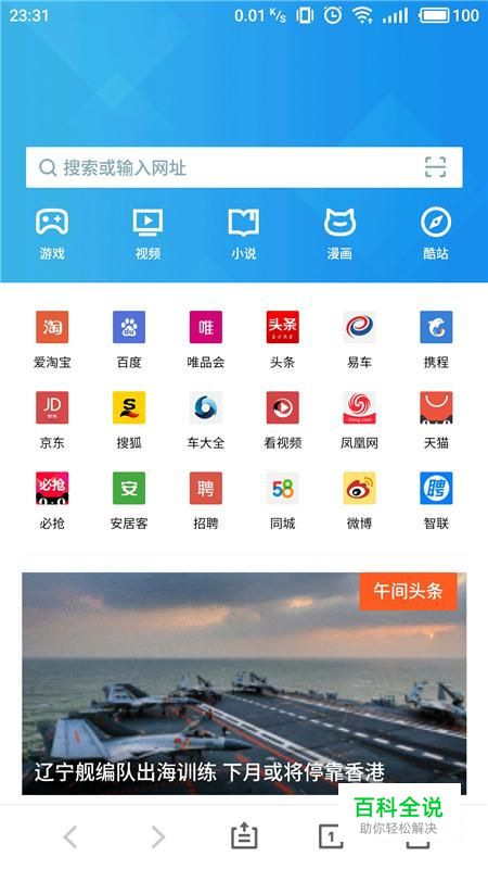 进入手机中的浏览器,点击网页搜索栏。