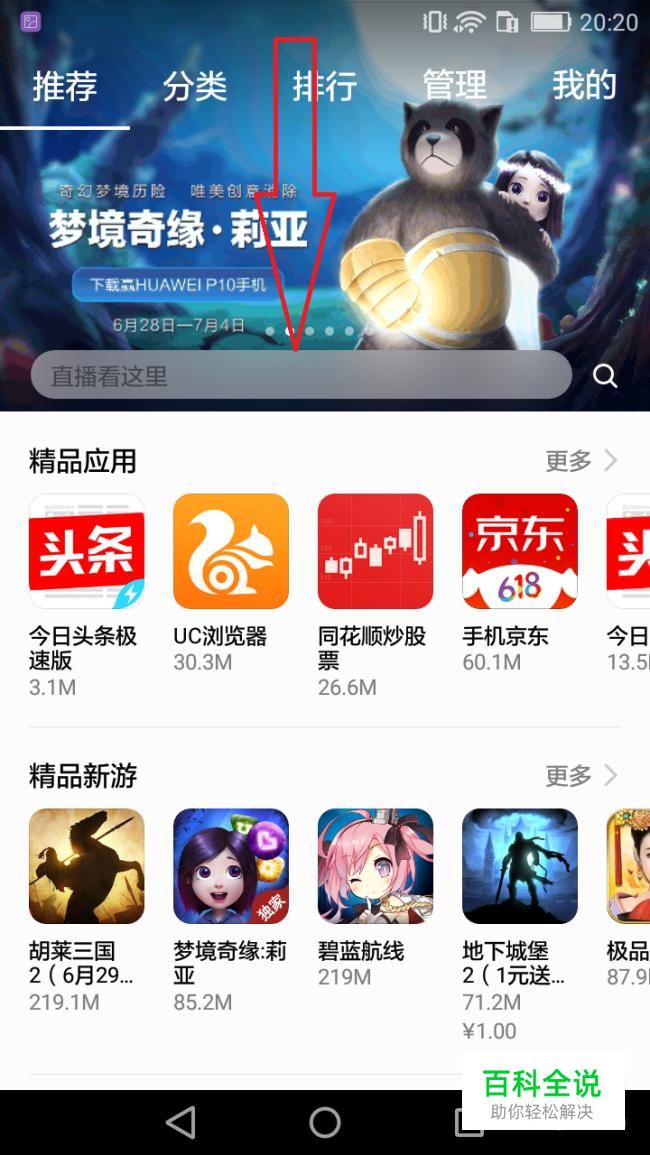 点击应用市场的搜索框。