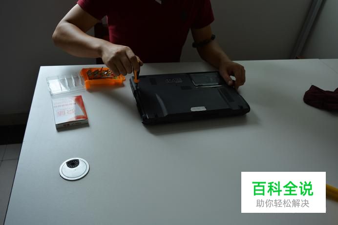 把所有的工具准备好,把笔记本电脑翻转过来(任何电子设备都需要把电源把除,然后把电脑的蓄电池拆卸下来,因为我的电源是坏的固死在上面就没拆掉)。