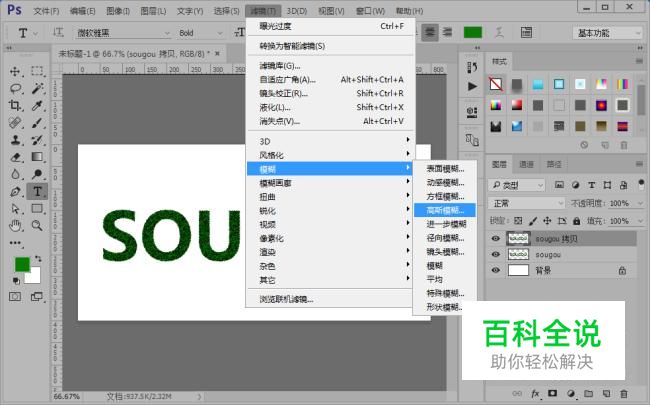 调整图层顺序;然后再给文字图层sougou 拷贝添加高斯模糊滤镜效果,参数如图所示。