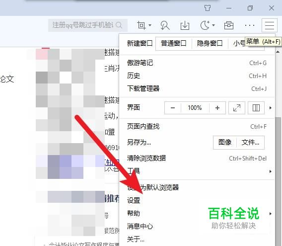 在进入qq官方网站前,点击浏览器的设置。