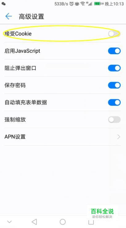 在高级设置里面,我们可以看到接受cookie是关闭的,如图所示。