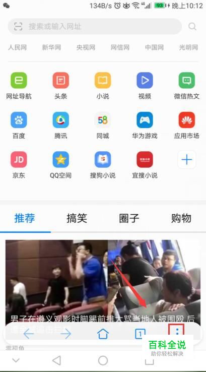 打开浏览器后,我们点击右下方的三个小蓝点,如图所示。