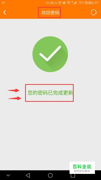 接着假如我们设置的密码2次都是一样的,进入验证,通过后,就会出现显示你的密码已完成更新的提示,说明我们已经找回密码或者修改密码成功了,如图所示。