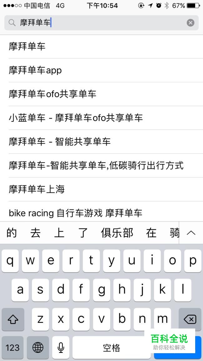点击下方的放大镜,弹出搜索框,在搜索框中输入查找“摩拜单车”。