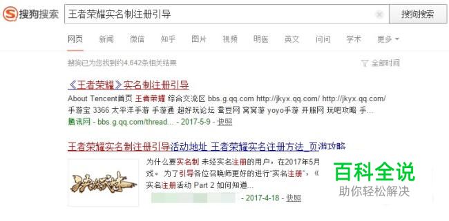 使用搜狗搜索,输入关键字王者荣耀实名制注册引导。