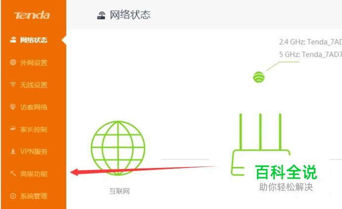 进入到后台后,点击路由器页面上的“高级功能”