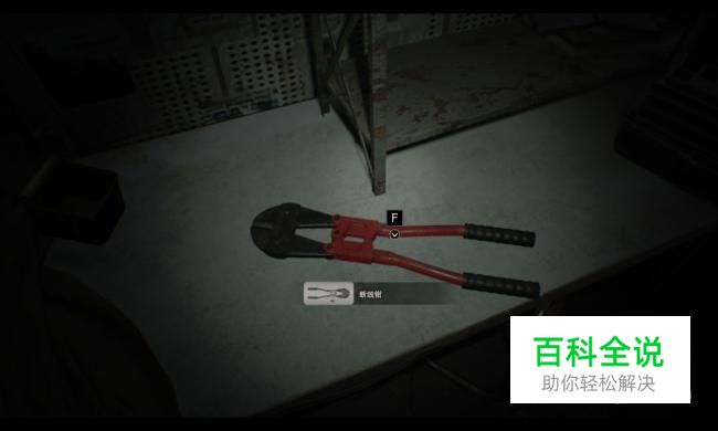 在旁边的桌子上发现断线钳,按F键进行拾取。