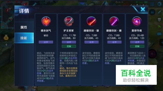 干将莫邪打法。释放2、3技能要多利用侧向站位,让弹道覆盖面更广,在敌人的侧面释放技能,可以有效的增加命中率。干将莫邪的连招尽量选择为先大招,再接2、3技能,因为大招命中敌人后会有巨额减速并且附带两层剑气被动,如果2、3技能命中,会触发剑气伤害,输出爆表。同时大招也可用于保命,在逃生时回头大招能减速对方,并且向后移动一段距离。