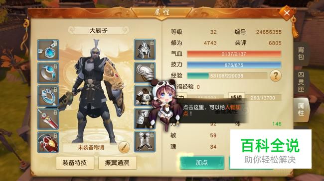 进入属性界面,点击“加点”可以将升级的点数进行添加操作。