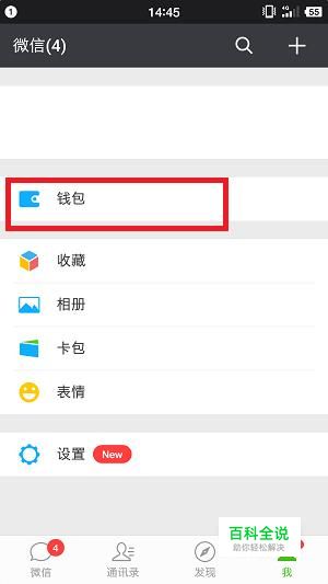 打开微信登陆。进入“我”,同样的选择“钱包”。