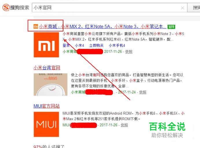 在搜狗浏览器右上角的搜狗搜索引擎中输入关键词“小米官网”。