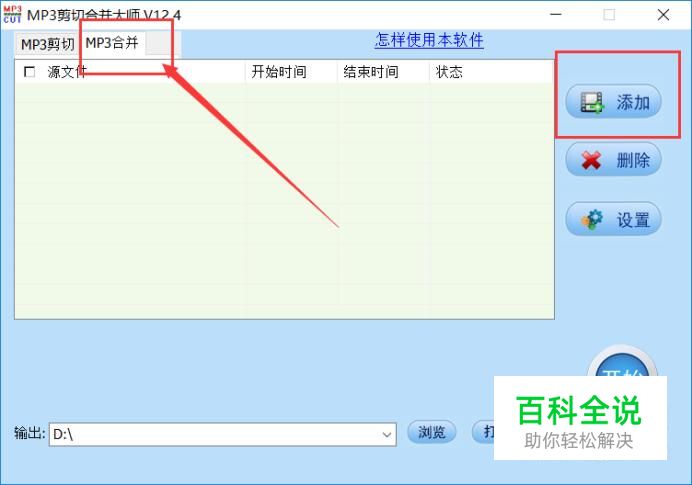 使用MP3合并功能时,我们也还是需要先点击“添加文件”按钮,选择要进行合并的歌曲文件。