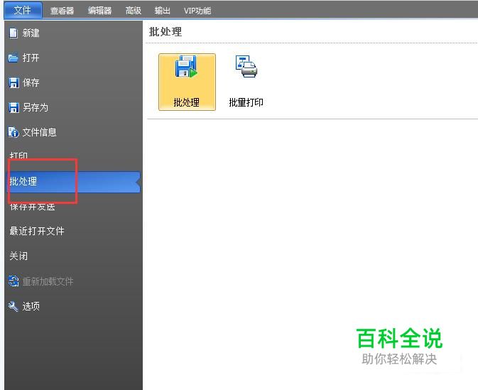 击左上角的“文件”--”批处理”-再点击右侧“批处理“