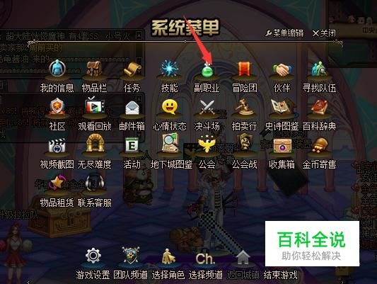 以分解师为例,先按ESC呼出菜单,找到副职业,点击。