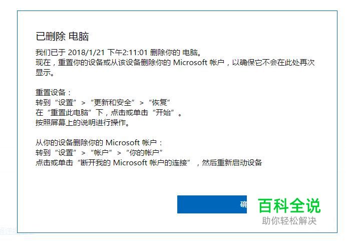 之后,我们进行确认就可以了,这样我们就把Microsoft账户从我们的电脑删除掉了,如图所示。