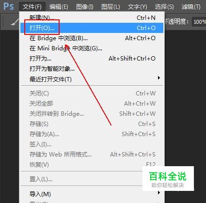 菜单栏:执行“文件”-“打开”命令,载入照片。