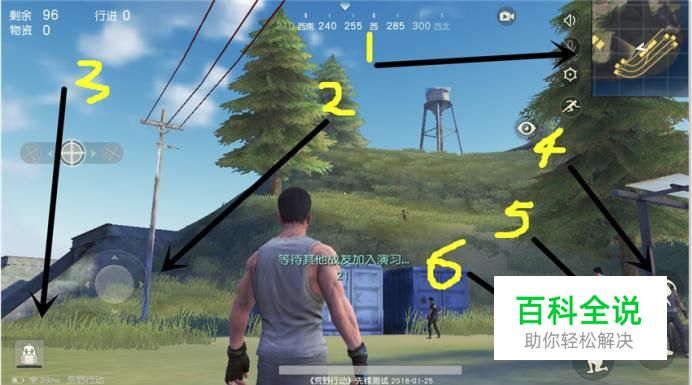 图中的1,2,3,4,5,6分别代表打开地图,人物移动,,打开背包,人物跳跃,人物趴下和人物蹲下的操作,下图二为地图打开后效果