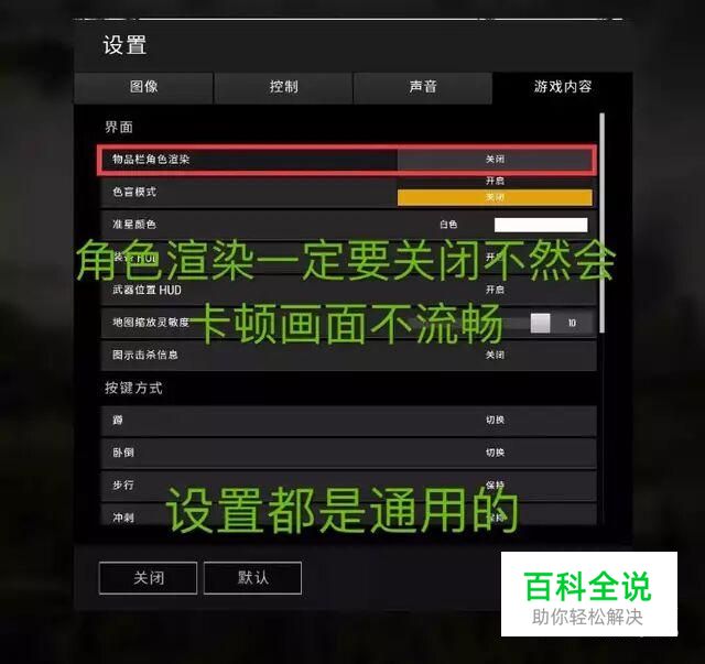 第一把角色渲染关闭,不然电脑配置不好的会卡顿,导致画面不流畅。