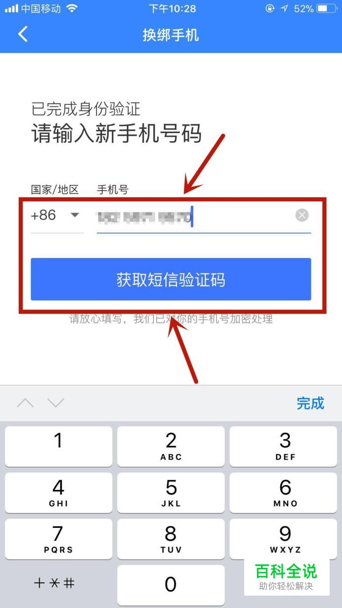 接着键入新的手机号码并点击“获取短信验证码”,如下图所示。