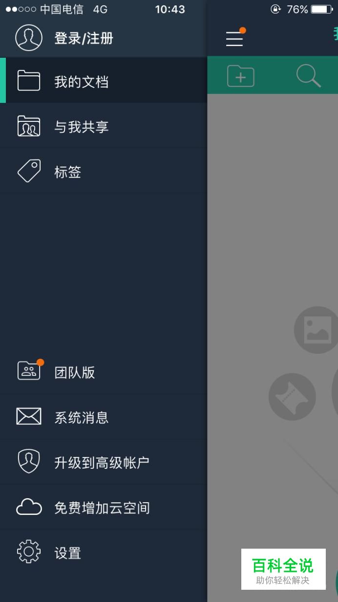进入了扫描全能王,我们把手指放在屏幕左方,然后向右滑。