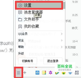 电脑端登录qq之后,点击窗口的左下角的主菜单,然后点击设置;