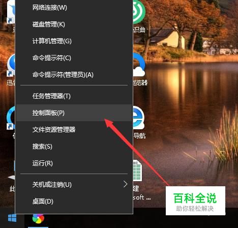右键开始按钮,选择控制面板。