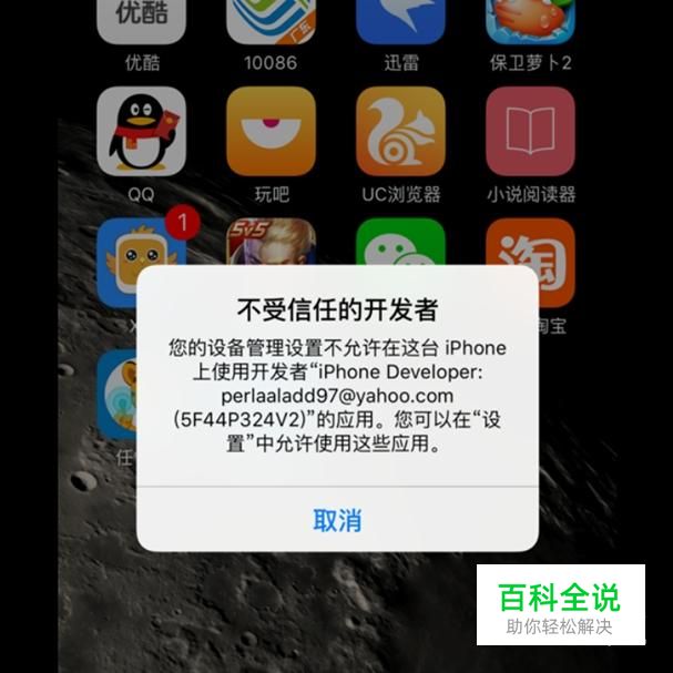 桌面跳出一个对话框选择信任就可以了,返回到主屏幕就可以使用改软件了