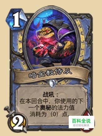 暗金教侍从,可以让下一个奥秘变成0费,在奥秘法卡组中可能会有一定的用处,不过奥秘法卡组本身不稳定和强度一般,所以拉低了这张卡的评价。
