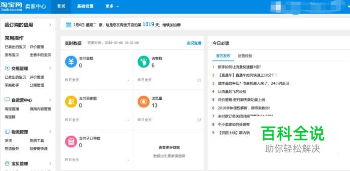 登录我们注册淘宝店铺的账号,进入卖家中心。