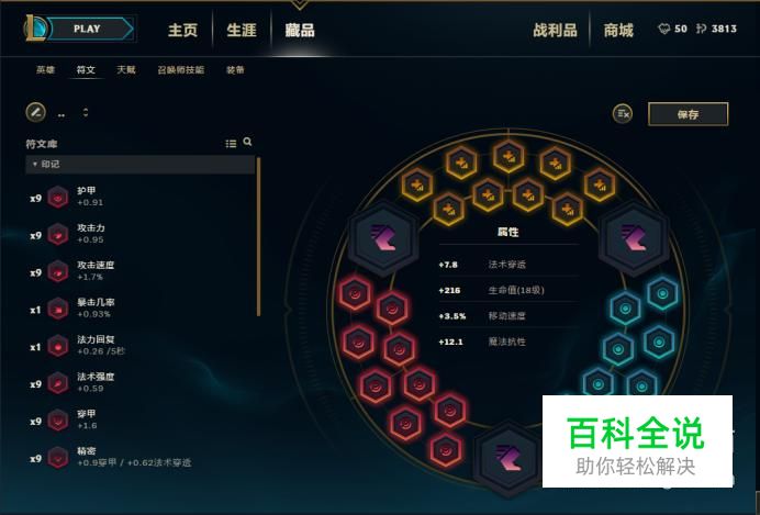 符文的搭配,小编选用的是3个大精华是移动速度,红色印记9个法穿,黄色符印9个成长生命值,蓝色雕纹9个魔法抗性。能提升瑞兹的移动速度和防御能力,帮助瑞兹更好的度过发育期。